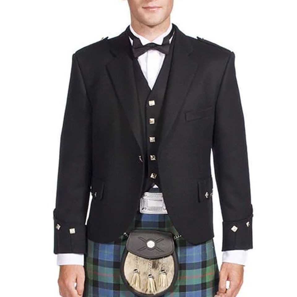 เสื้อแจ็คเก็ตคิลท์ลายอาร์ไกล์ทำมือสไตล์สก็อต พร้อมเสื้อกั๊กด้านในสำหรับงานแต่งงาน ขนาดรอบอก 34 ถึง 54 นิ้ว