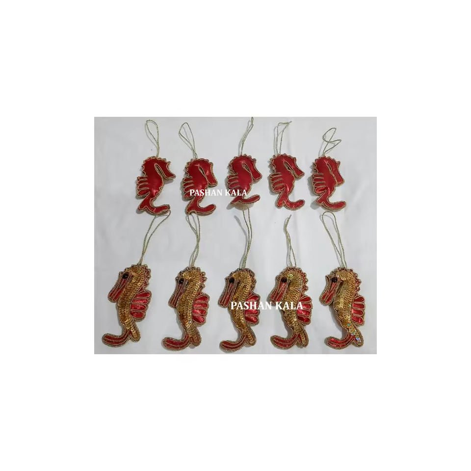 เครื่องประดับคริสต์มาสที่แขวนประดับด้วยลูกปัดสีทองรูปม้าทะเลทำด้วยมือตกแต่งต้นไม้