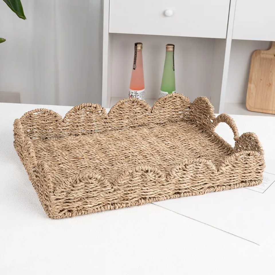 Handmade Rustic Seagrass Storage Basket with Scallop Design Natural Brown Back to School
