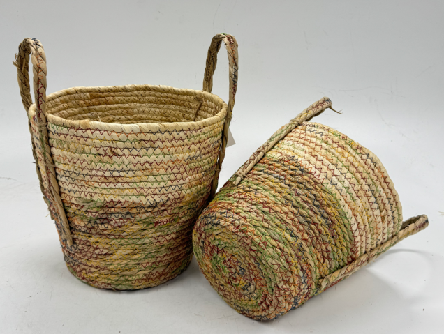 ตะกร้าเก็บหญ้าทะเลทำด้วยมือพร้อมเชือกทอสำหรับใส่ของในสวนที่ปลูกต้นไม้ในสวน