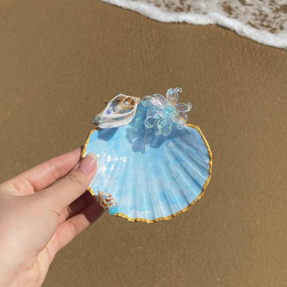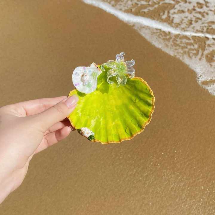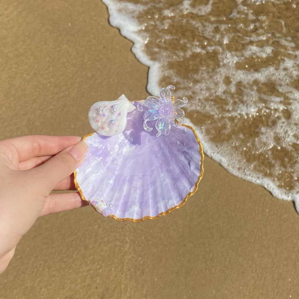 ถาดใส่เครื่องประดับเปลือกหอยทำมือ จานตกแต่งเปลือกหอยสแกลลอป งานฝีมือเปลือกหอยธรรมชาติสำหรับตกแต่งบ้านและเป็นของขวัญ