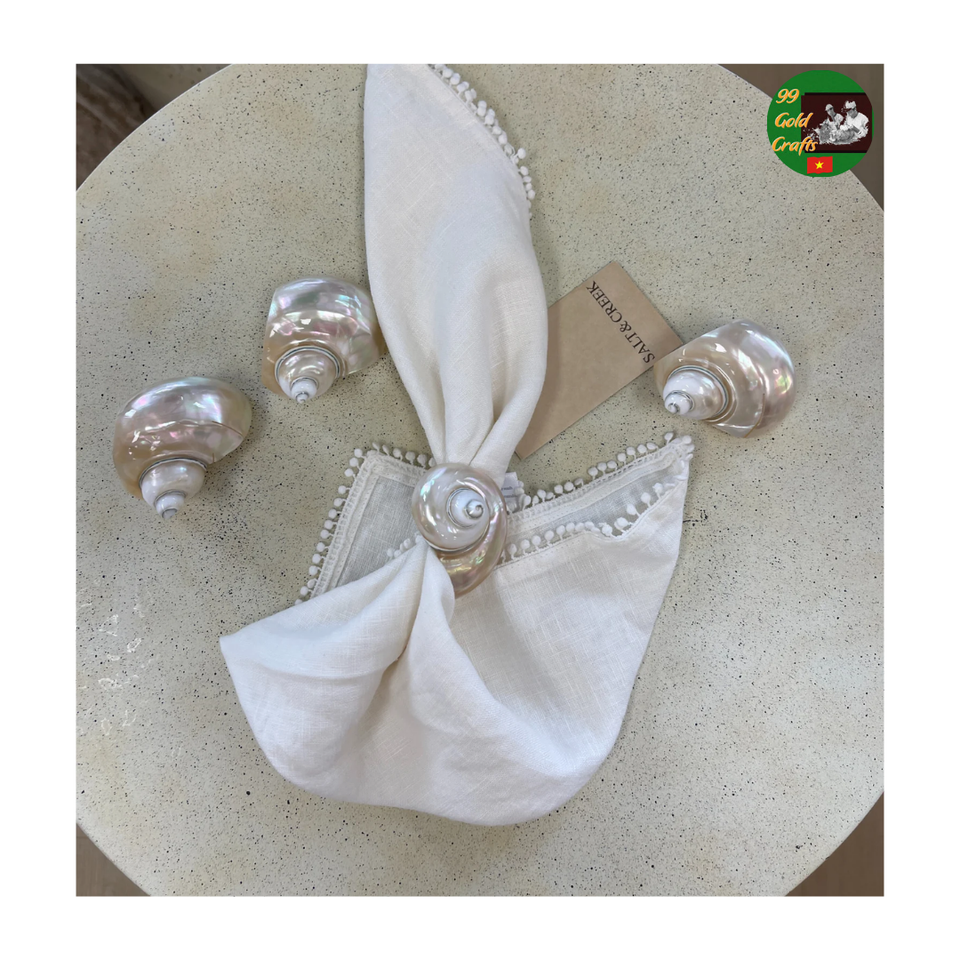 แหวนผ้าเช็ดปากเปลือกหอยทำมือ เปลือกหอยธรรมชาติแท้ ตกแต่งโต๊ะ แหวนผ้าเช็ดปากเปลือกหอยคริสตัล งานแต่งงานสุดหรู