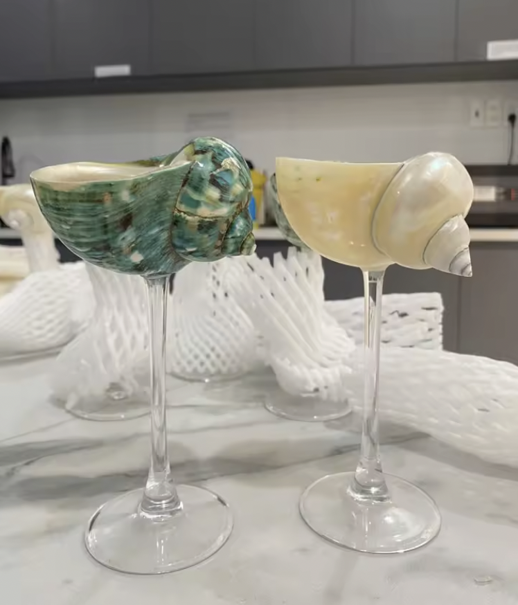 แก้วไวน์เปลือกหอยทำมือจากเวียดนาม แก้วเปลือกหอยธรรมชาติสำหรับไวน์ ค็อกเทล ตกแต่งโต๊ะบาร์ธีมชายหาด
