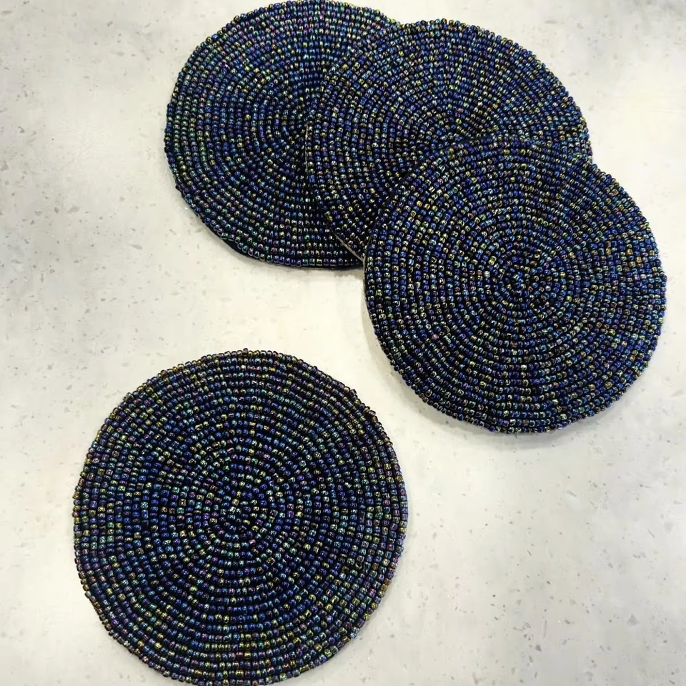 ชุดจานรองแก้วปักลูกปัดทำมือสำหรับตกแต่งบ้าน จานรองแก้วปักลูกปัดหรูหราสำหรับโต๊ะอาหาร