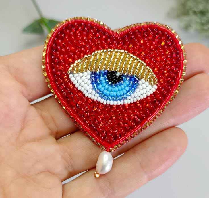 เข็มกลัดรูปหัวใจประดับลูกปัดทำมือ พร้อมจี้มุกน้ำจืด สำหรับผู้หญิง ตกแต่งเสื้อผ้า กระเป๋า และเครื่องประดับ