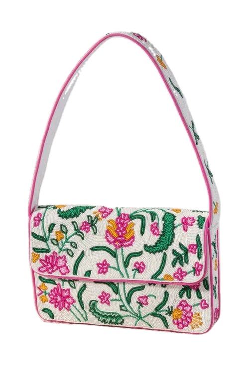 กระเป๋าถือปักลูกปัดทำมือ ลายกลีบดอกไม้ กระเป๋าถือประดับลูกปัดสั่งทำพิเศษ พร้อมพู่หลากสี