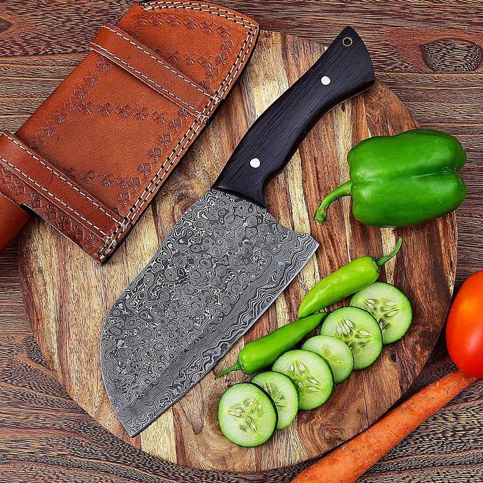 มีดสับครัวจากเซอร์เบียทำด้วยมือมีดหั่นเนื้อสำหรับเชฟมืออาชีพพร้อมปลอกหนัง