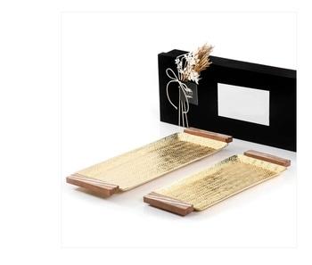 ชุดแฮนด์เมดสีทอง2ชิ้นถาดเสิร์ฟช็อกโกแลตทุบพร้อมที่จับไม้ถาดเสิร์ฟอาหารที่หรูหราขนาดต่างๆ