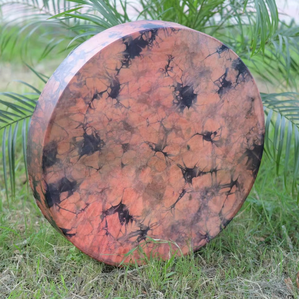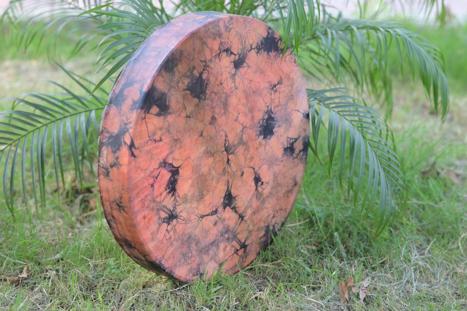 กลองชามานทำมือ กลองกรอบเพ้นท์ลาย กลองบำบัดจิตวิญญาณ เครื่องดนตรีสำหรับการทำสมาธิและพิธีกรรม
