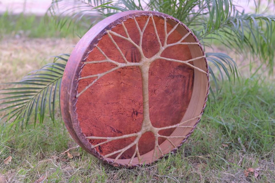 กลองชาแมนทำมือลายต้นไม้แห่งชีวิต | กลองกรอบหนังแพะธรรมชาติ | กลองพิธีกรรม การทำสมาธิ และการบำบัดด้วยเสียง