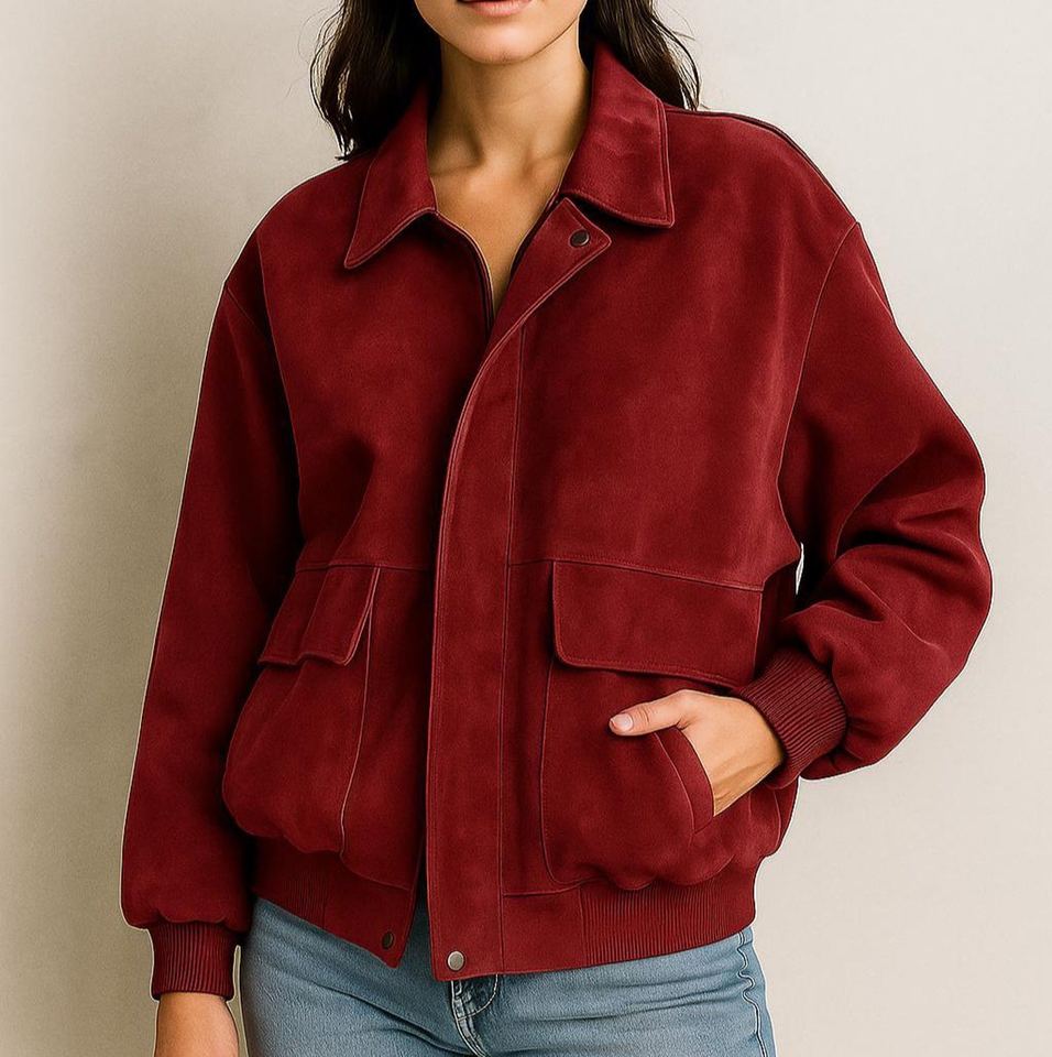 เสื้อแจ็คเก็ตนักขี่จักรยานหนังแกะทำด้วยมือทรงหลวมเข้ารูปสำหรับผู้หญิงขี่มอเตอร์ไซค์แบบย้อนยุคกระดุมสองแถวกันลมฤดูหนาว