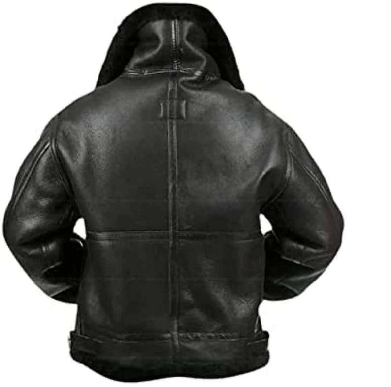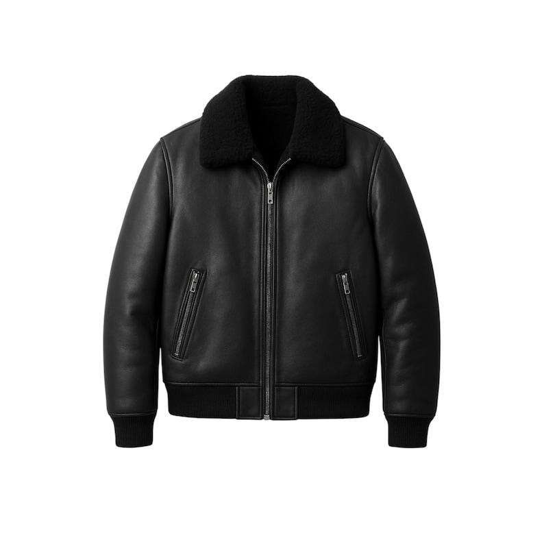 Handmade Sheepskin Leather Bomber Jacket with Artificial Fur Lining – Men’s Black Winter Coat