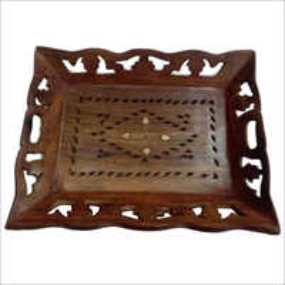 ชุดถาดเสิร์ฟไม้ชีแชมทำมือ 3 ชิ้น ถาดไม้แกะสลักตกแต่งสำหรับชา กาแฟ สไตล์โมร็อกโกโบราณ ของตกแต่งบ้าน