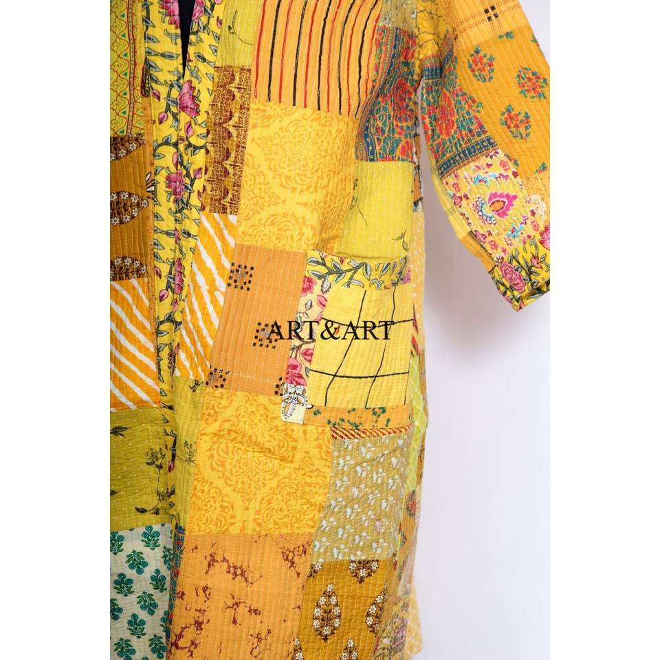เสื้อคลุมกิโมโนผ้าไหมทำมือแบบควิลท์ คันธา สำหรับทุกเพศทุกวัย ไซส์พลัส ชุดคลุมฤดูร้อน ของขวัญสำหรับผู้หญิง ผ้าปะติดปะต่อ ระบายอากาศได้ดี เนื้อผ้านุ่ม