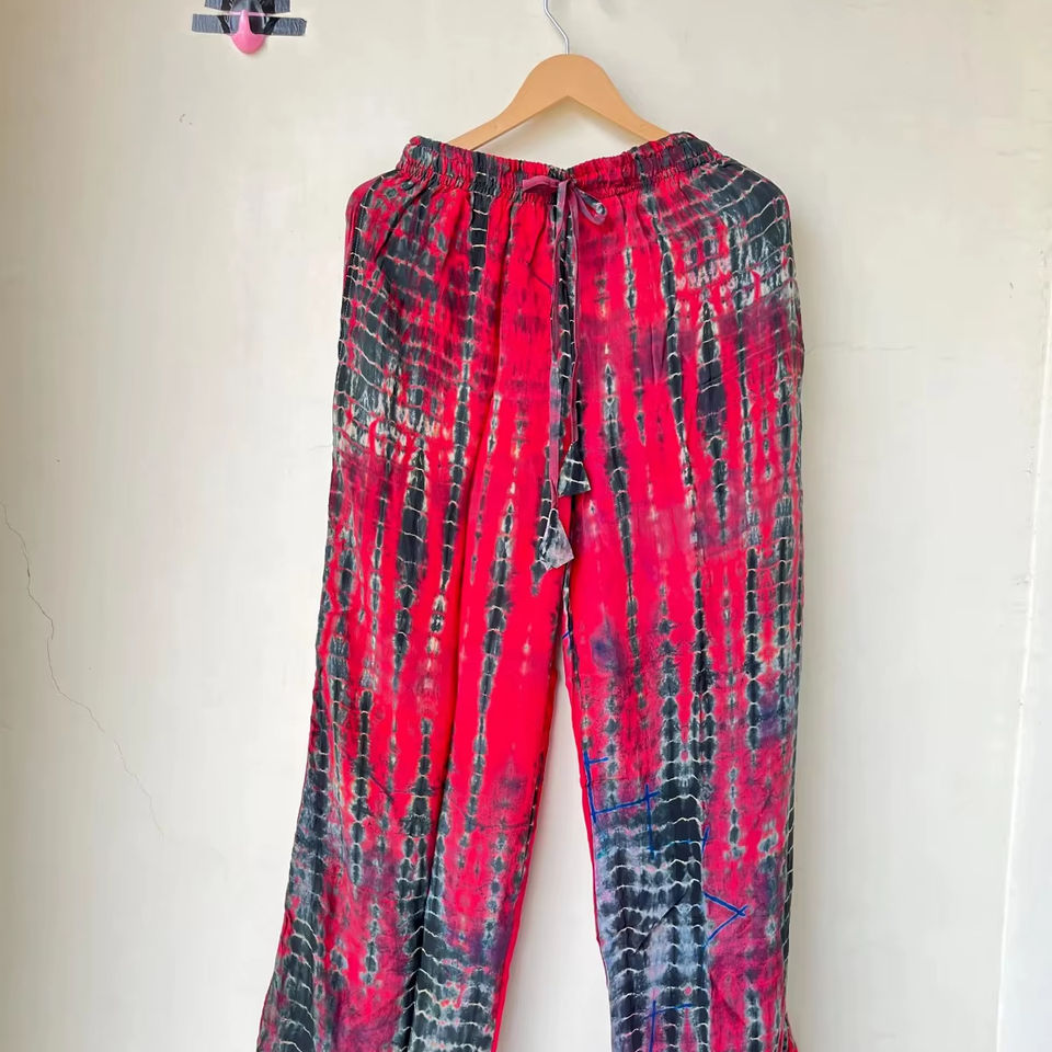 ชุดนอนผ้าไหมมัดย้อมทำด้วยมือชุดนอนแบบโบฮีเมียนสำหรับผู้หญิงชุดนอนผ้าไหมแบบหลวม
