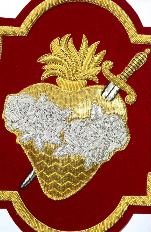 ป้ายปักลายตัวอักษรตราสัญลักษณ์บนเสื้อเบลเซอร์ เสื้อโปโล เสื้อแจ็คเก็ต ทำด้วยมือจากลวดเงินแท้ ผ้าทวิลทอลายดอกไม้