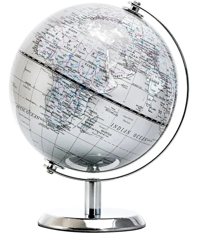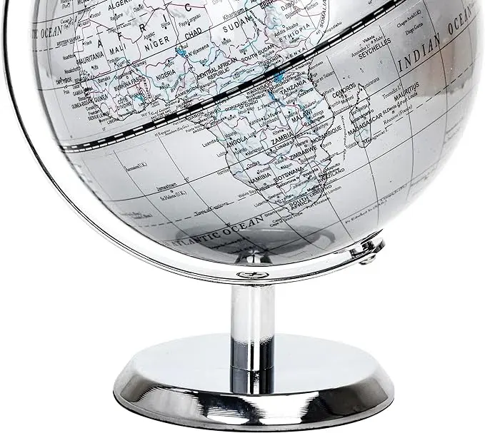 ลูกโลกตกแต่งขนาดเล็ก งานฝีมือโลหะเงิน ดีไซน์ด้วยมือ พร้อมลวดลายภูมิศาสตร์ สำหรับตกแต่งบ้าน