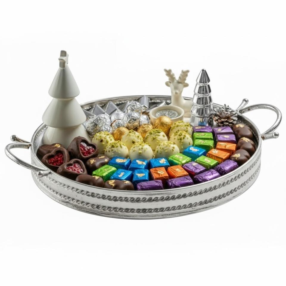 ถาดใส่ช็อกโกแลตโลหะเคลือบเงินทำมือ สำหรับโอกาสพิเศษ ขนมหวานหรูหรา จัดแสดงขนมหวานสำหรับงานปาร์ตี้ ราคาสุดคุ้ม