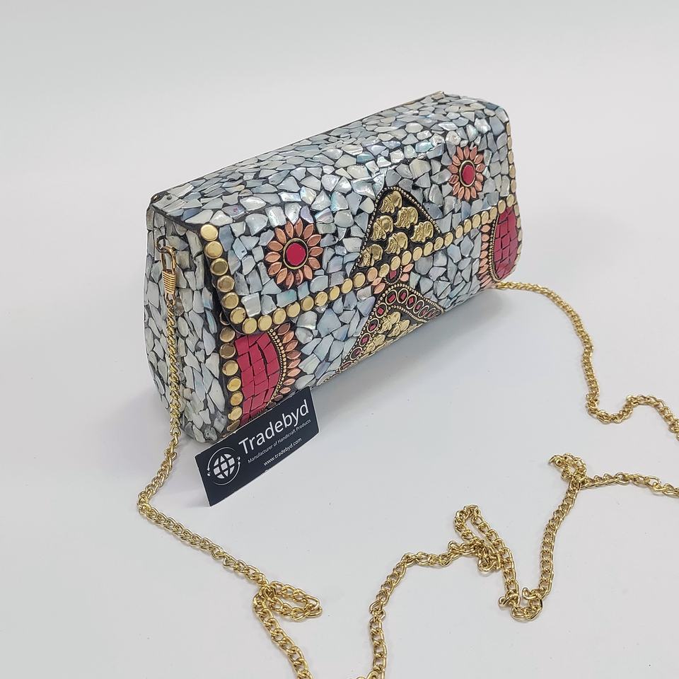 กระเป๋าคลัทช์โลหะสีเงินทำด้วยมือสายโซ่ไข่มุกกันน้ำปิดแม่เหล็กสำหรับงานเทศกาลชาติพันธุ์ออกแบบกระเป๋าผู้หญิง