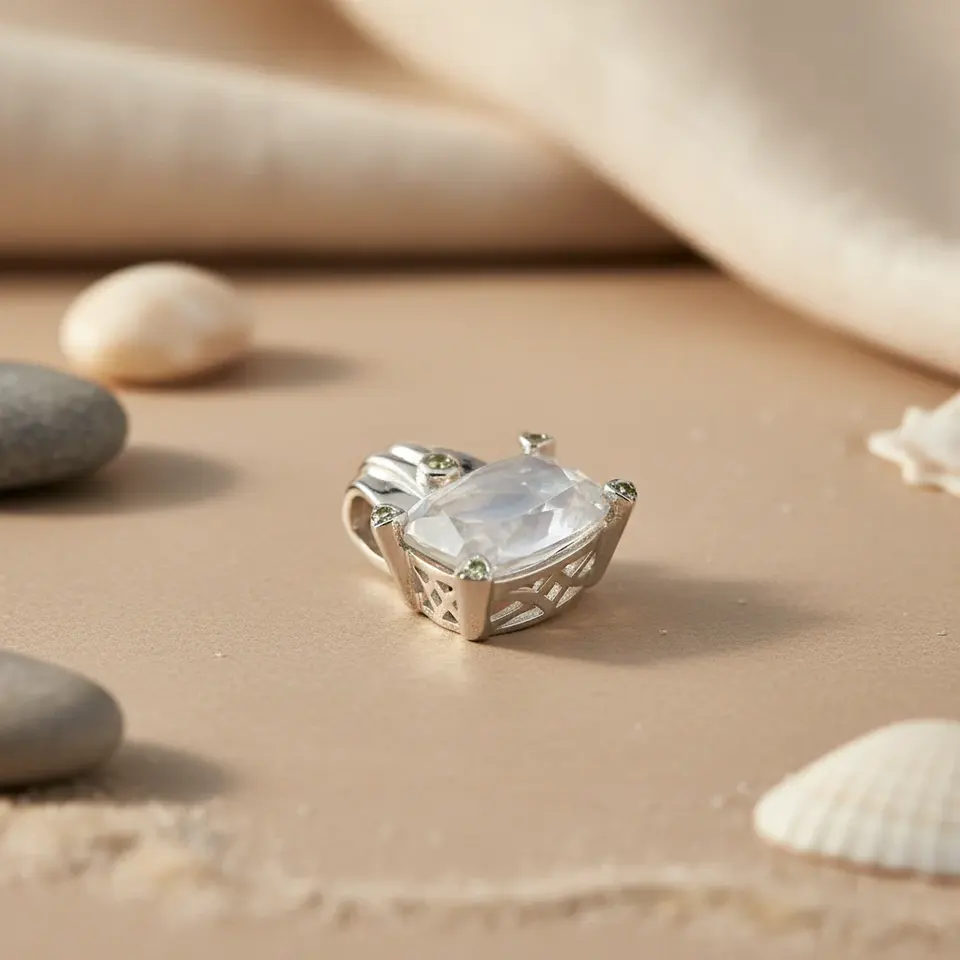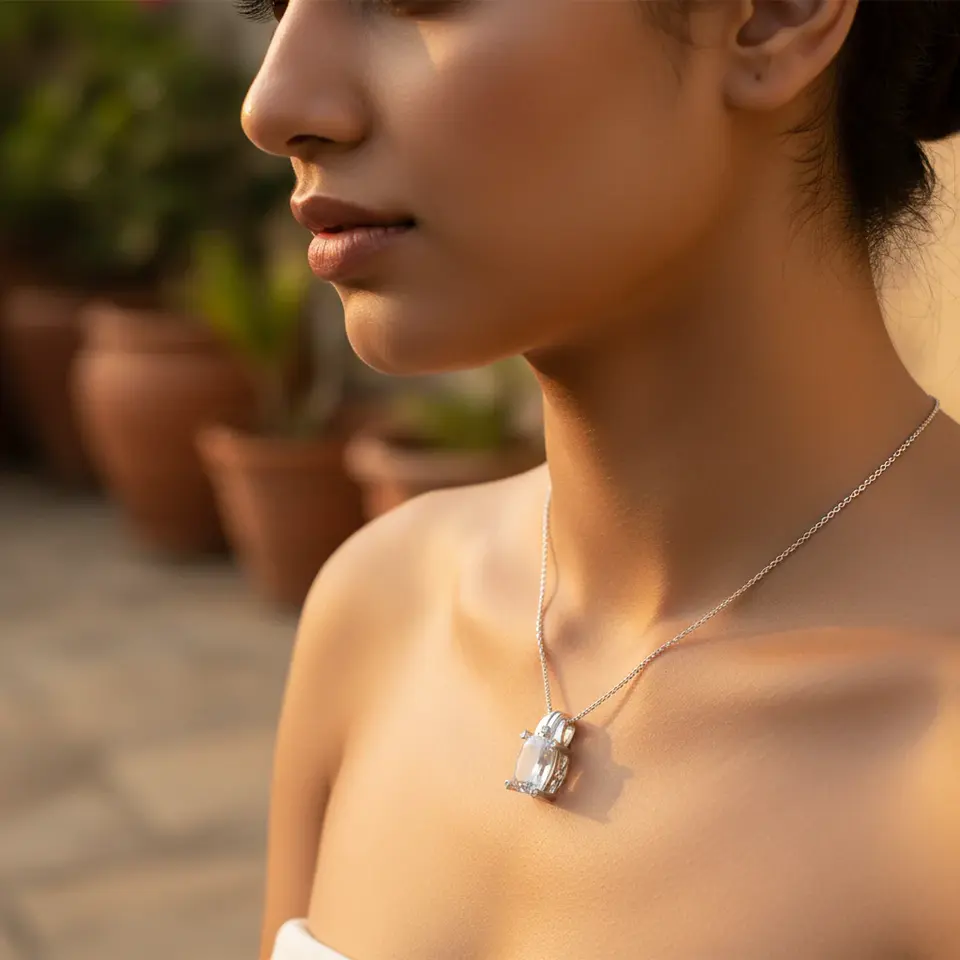 จี้เงินแท้ทำมือประดับมูนสโตนสำหรับผู้หญิง สไตล์ศาสนา ชุบทอง/โรสโกลด์ พร้อมจี้แพลตตินัม ของขวัญเครื่องประดับอัญมณี