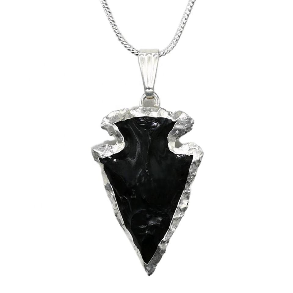 Product name:BLACK OBSDIAN SILVER PLATED ARROW HEAD PENDANT