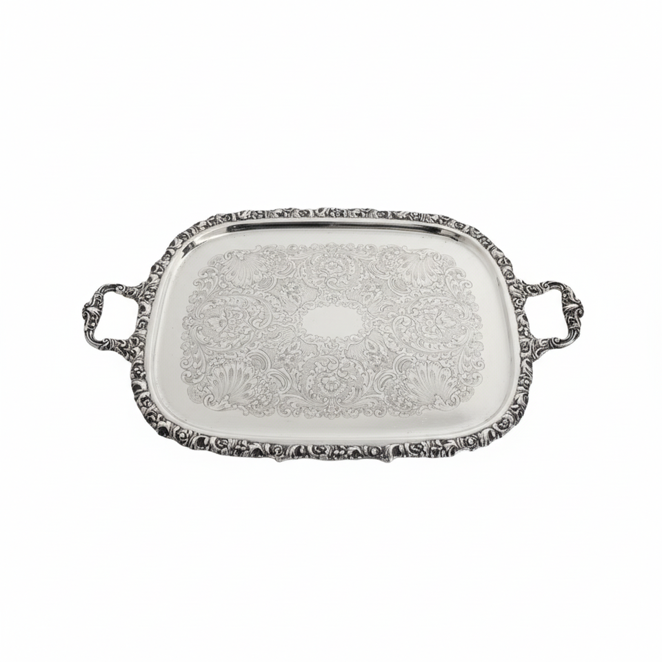 ถาดเสิร์ฟทรงไข่ทำจากทองเหลืองและอลูมิเนียมชุบเงินทำด้วยมือพร้อมที่จับกำหนดขนาดเองสำหรับเสิร์ฟอาหารที่บ้าน