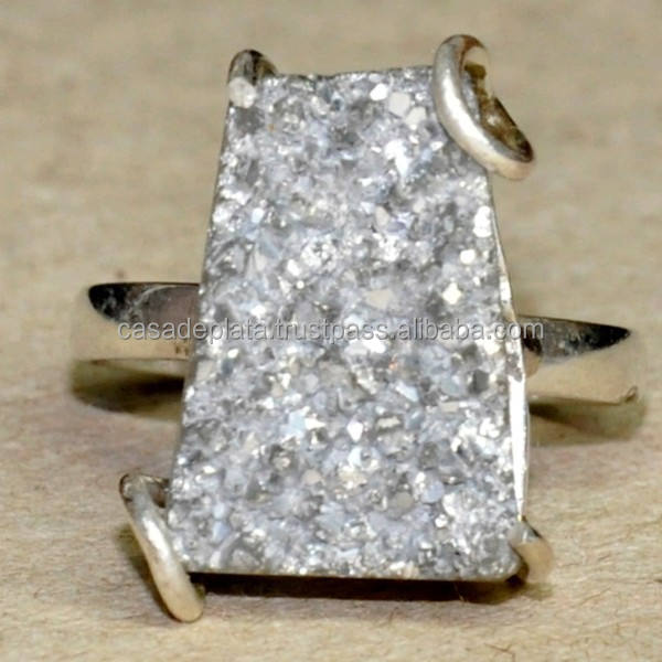 แหวนเงินทำด้วยมือ druzy, แหวนเงินสเตอร์ลิง925, แหวนเงินอัญมณีเครื่องประดับเงินออนไลน์แหวนแฟชั่นสำหรับผู้หญิง