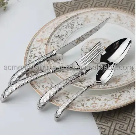 ชุดช้อนส้อมเครื่องเงินทำด้วยมืออุปกรณ์รับประทานอาหารสุดหรูเครื่องใช้บนโต๊ะอาหารทำจากสแตนเลสคุณภาพดีเยี่ยม