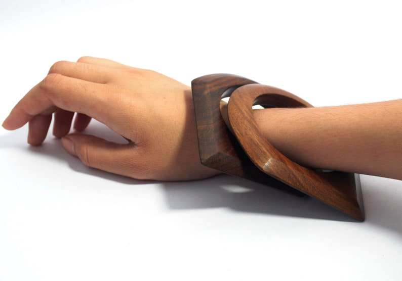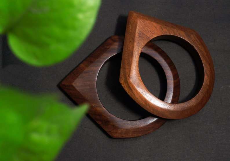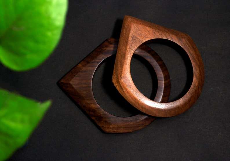 ชุดกำไลข้อมือไม้ซิสโซทำมือ 2 ชิ้น กำไลเรียบแบบซ้อนได้ รูปทรงสามเหลี่ยมและสี่เหลี่ยม เครื่องประดับรูปทรงเรขาคณิต ขัดเคลือบด้วยแว็กซ์