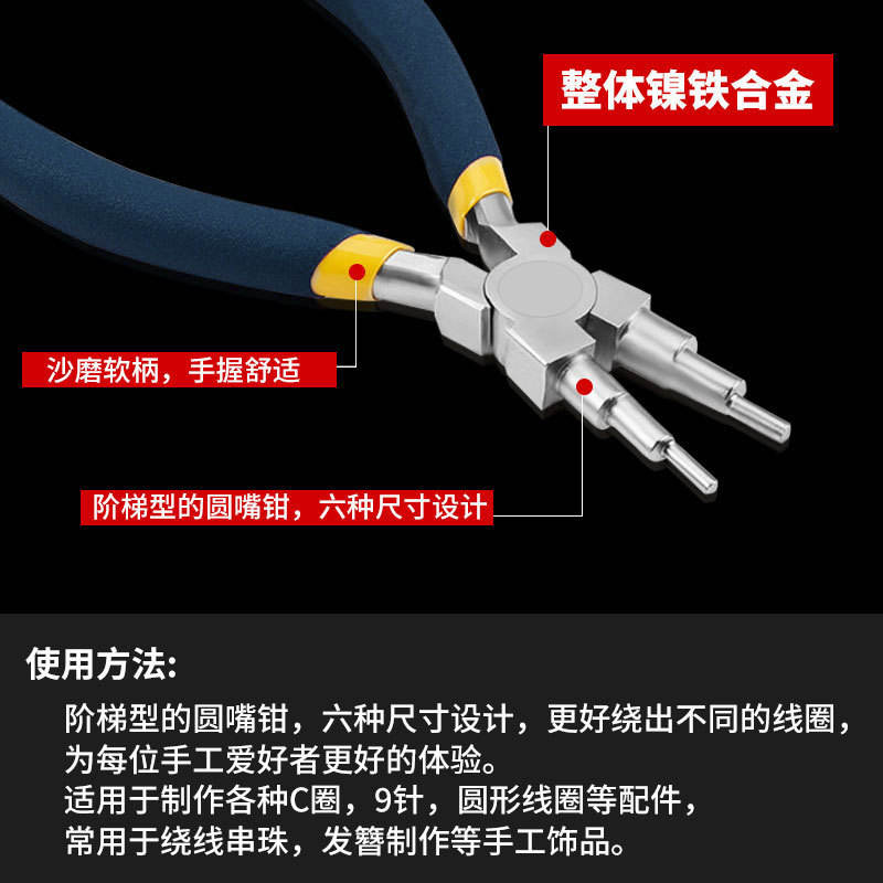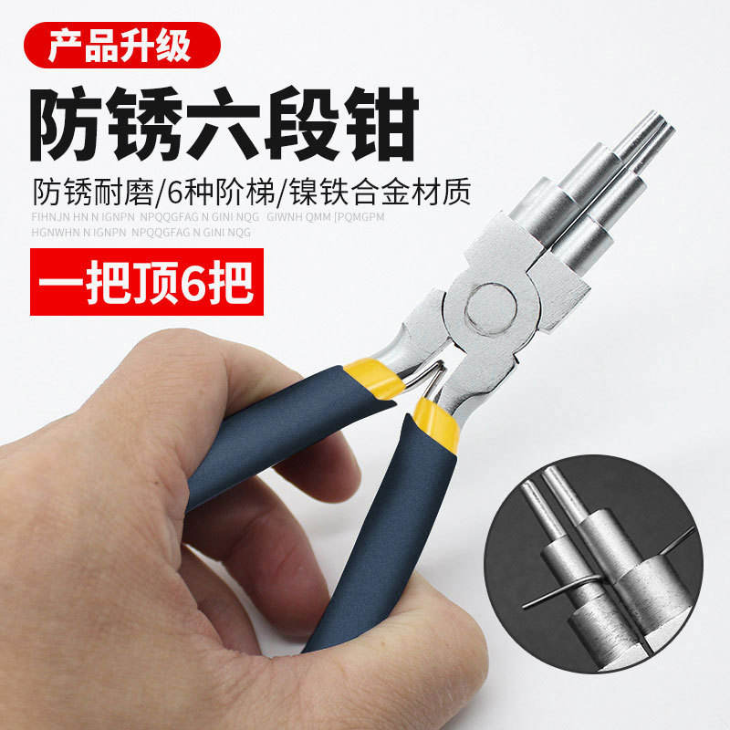 คีมทำมือ 6 หัว 6-in-1 ป้องกันสนิม ปากกลม สำหรับงานเครื่องประดับ DIY เครื่องมือขึ้นรูปและพันลวด 3 ท่อน