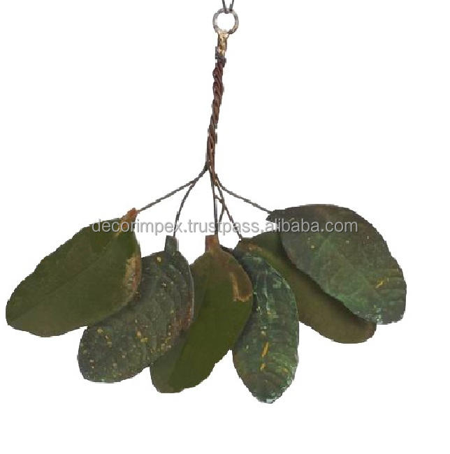 Handmade Small Artificial Magnolia Iron Mistletoe Bunch Green Finish Macrame Wall Hanging for Store Wholesale Magnolia Leave