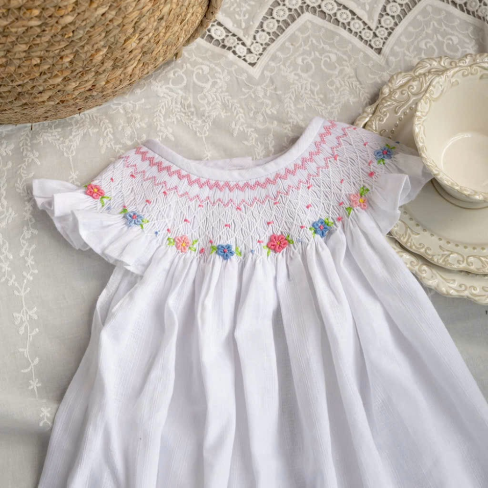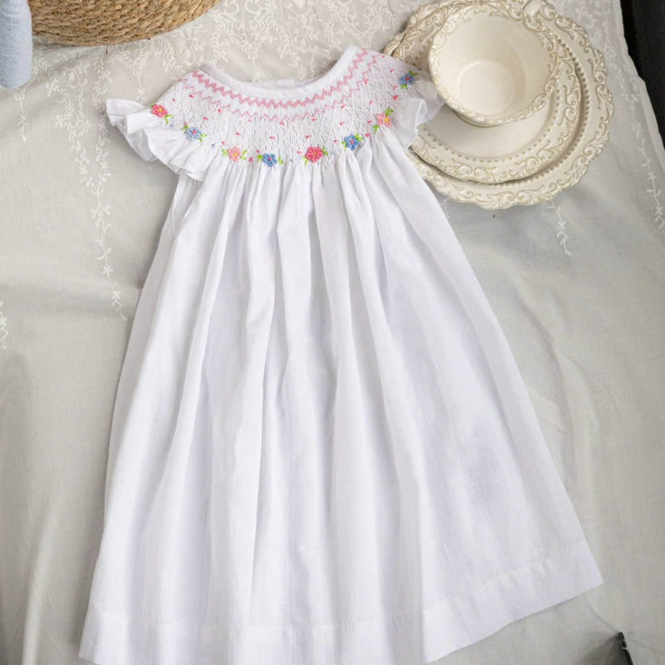 ชุดเดรสผ้าลินินเนื้อนุ่มทำด้วยมือสำหรับเด็กผู้หญิงสไตล์ลำลองสำหรับวันเกิดครั้งแรกของเด็กวัยหัดเดินผลิตในเวียดนาม