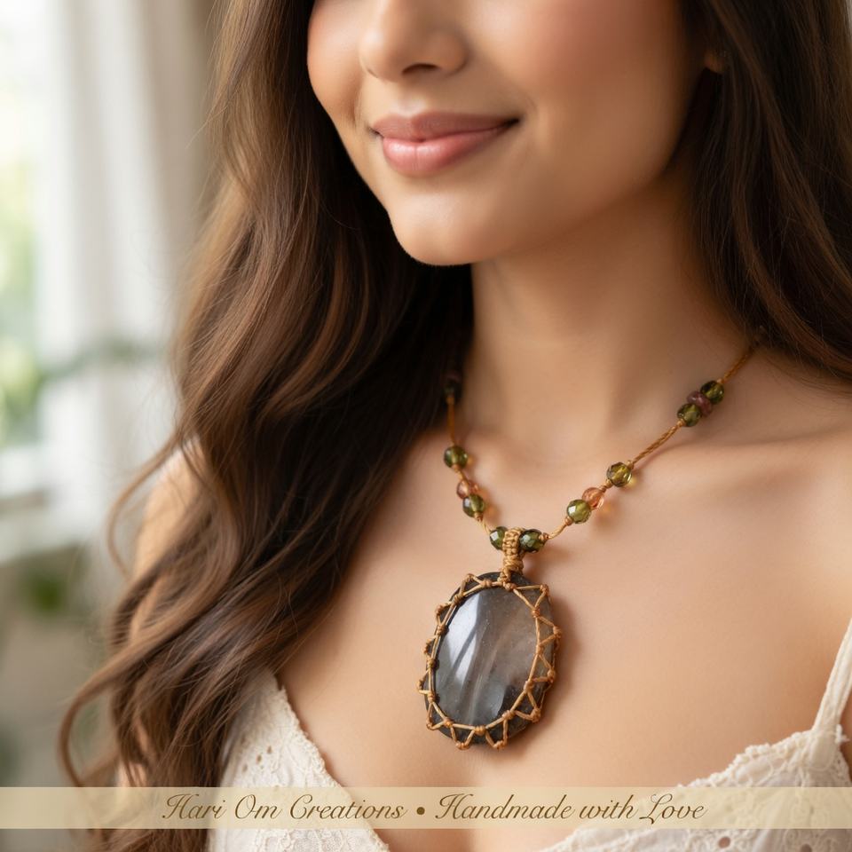 สร้อยคอจี้หินควอตซ์สโมคกี้เคลือบแพลตตินั่มทำมือประดับด้วยลูกปัดน้ำจืดแบบมาคราเม่ หินสีน้ำตาลทรงเหลี่ยม สไตล์โบโฮ สำหรับงานปาร์ตี้ เสริมพลังบำบัด