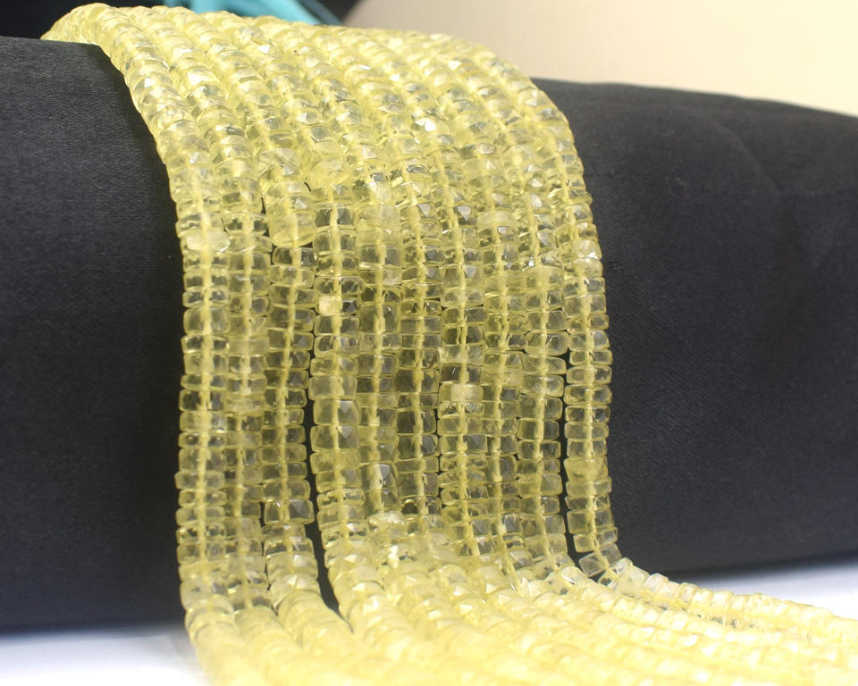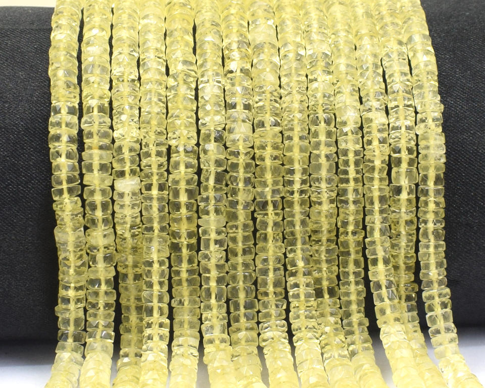 แฮนด์เมดตัดเรียบมะนาวควอตซ์ลูกปัดพลอยรูปทรง Heishi สำหรับเครื่องประดับส่วนประกอบการค้นพบมะนาวควอตซ์สำหรับเครื่องประดับ