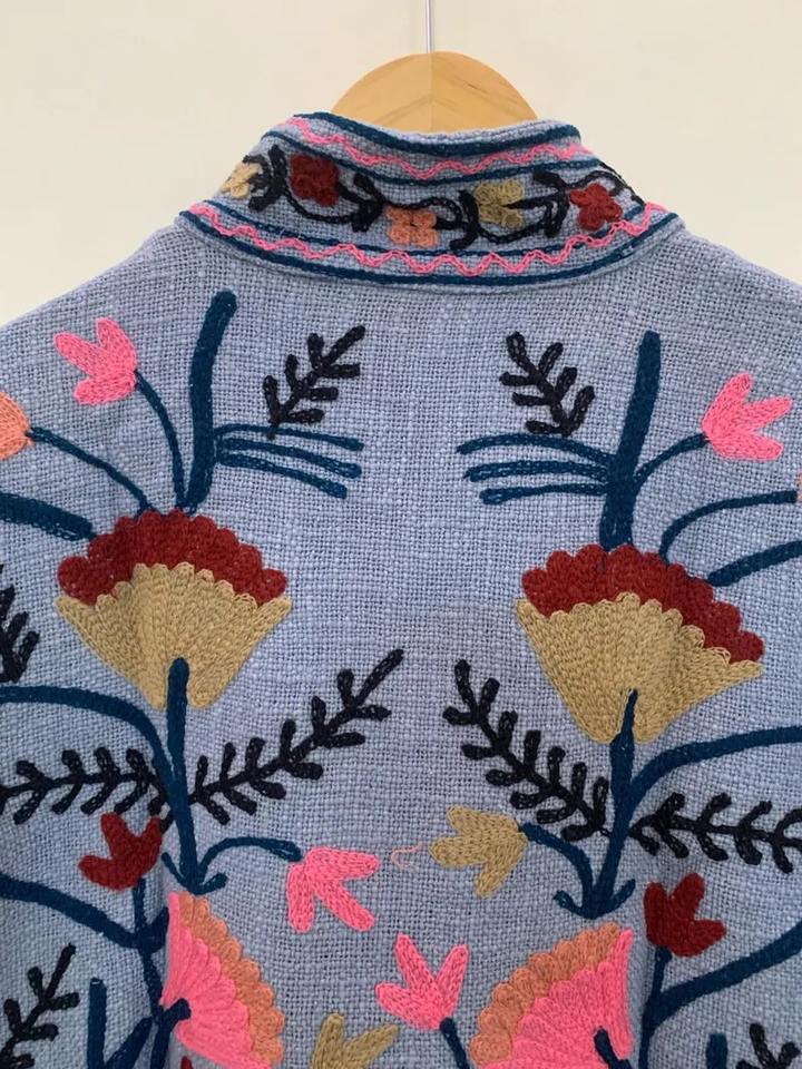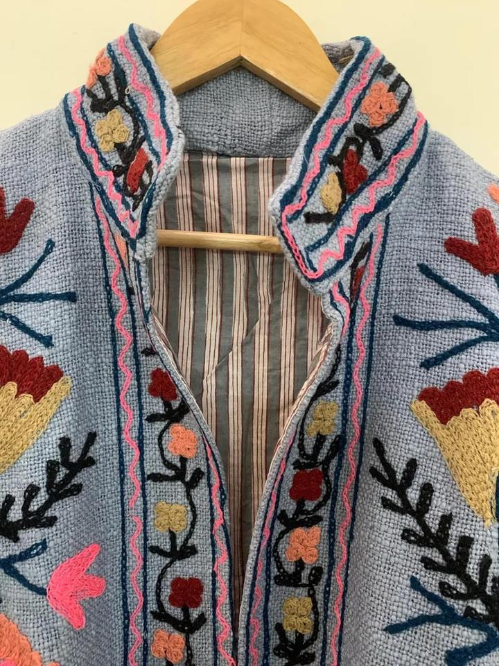 Suzani แจ็กเก็ตผ้านุ่มสำหรับผู้หญิงแจ็คเก็ตผ้านุ่มปักลายดอกไม้ทำด้วยมือ