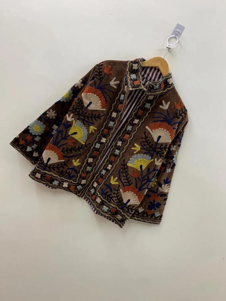 Handmade Soft Velvet Jacket Bohemian Short Velvet Jacket Velvet Embroidery Short Jacket Women's Clothing Coat