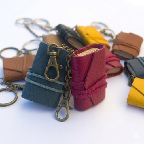 พวงกุญแจสมุดเล่มเล็กปกหนังนิ่มทำมือ