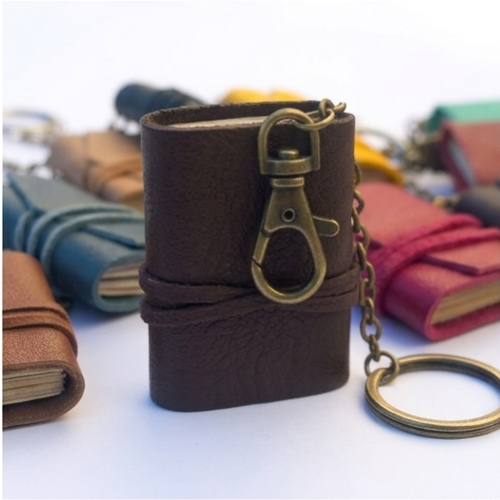 สมุดบันทึกพกพาขนาดเล็กแบบพวงกุญแจหนัง