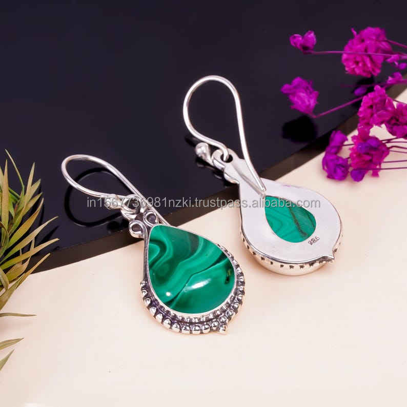 ทำด้วยมือแข็ง925เงินสเตอร์ลิงต่างหูอะซูไรต์เครื่องประดับคริสโตคอลลามาลาไคต์ต่างหูมาลาไคท์