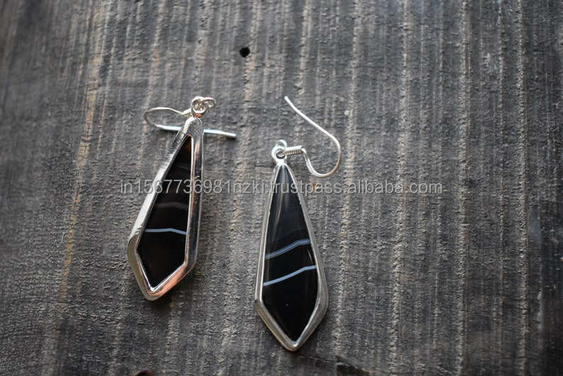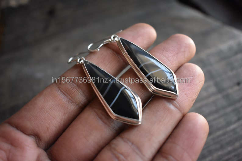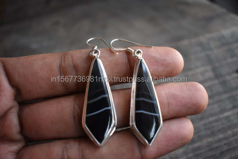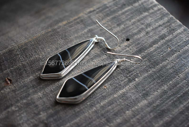 ต่างหูเงินแท้ 925 ทำมือ, ต่างหูอาเกตธรรมชาติ, ต่างหูอาเกตแถบสีดำ, ต่างหูอาเกต