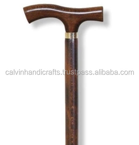 ด้ามจับทำจากทองเหลืองแข็งแบบคลาสสิกไม้เท้าใช้ในชีวิตประจำวันทำจากไม้บีชสีน้ำตาลทำจากทองเหลืองคอปกไม้เท้า