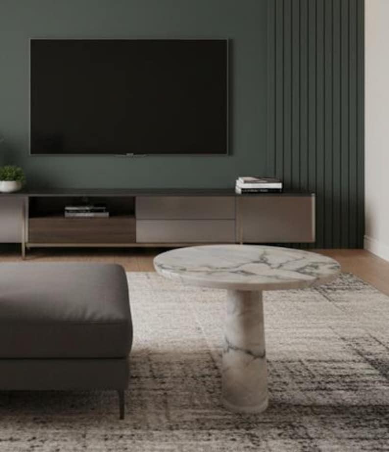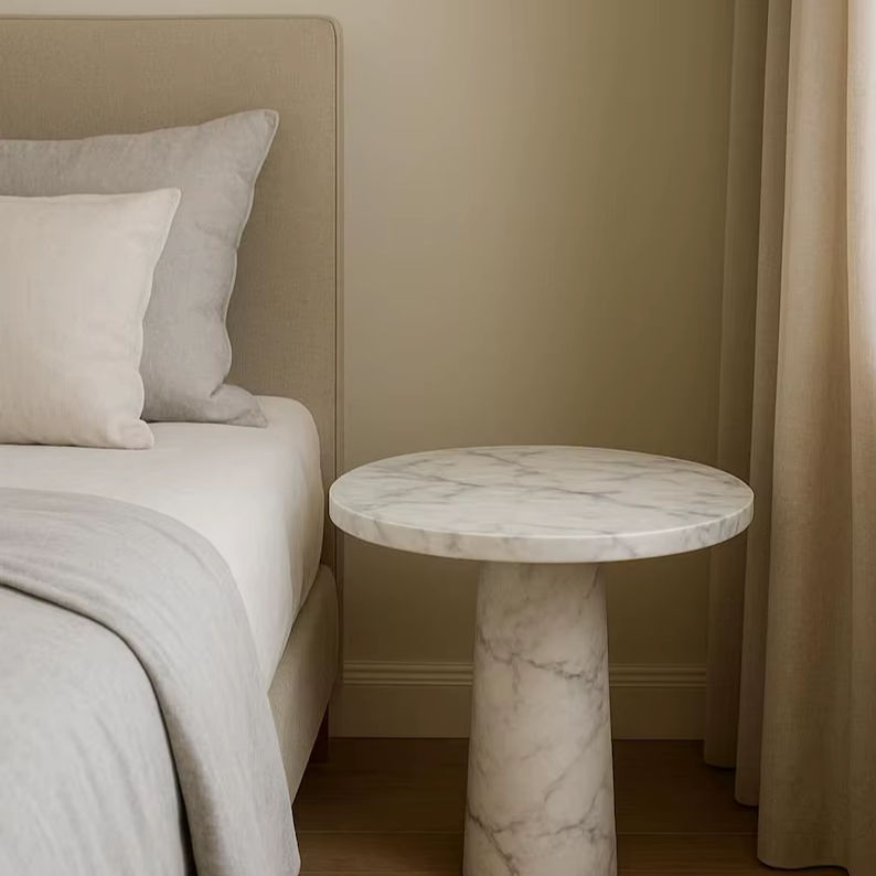 โต๊ะข้างหินอ่อนแท้ทำมือ | โต๊ะวางของทรงกลมแบบโมเดิร์น