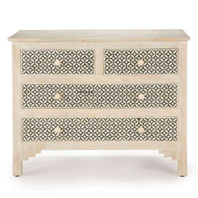 ตู้บุฟเฟต์สำหรับห้องนั่งเล่นและห้องทานอาหารทำด้วยมือไม้เนื้อแข็งฝังโครงสีดำทรงเรขาคณิต