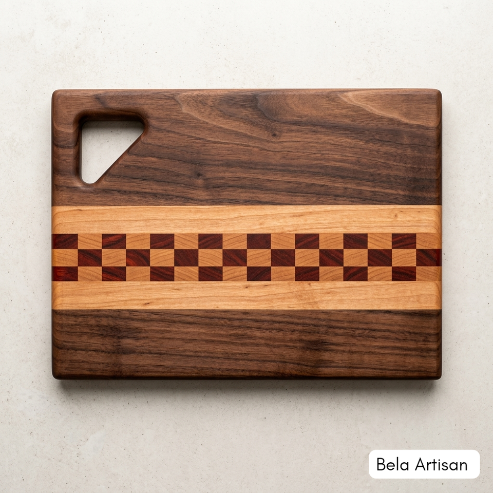เขียงไม้เนื้อแข็งทำมือ Bela Artisan ลายตกแต่งรูปทรงสี่เหลี่ยมผืนผ้า หนา 2.0 ซม. ใช้กับเครื่องล้างจานได้