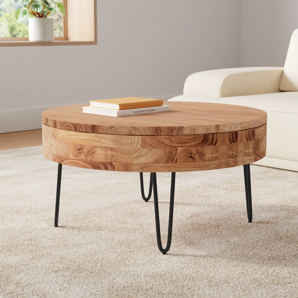 โต๊ะกาแฟทำจากไม้เนื้อแข็งทรงกลมพร้อมที่เก็บของดีไซน์มินิมอลสำหรับเฟอร์นิเจอร์ในห้องนั่งเล่นโรงแรมและอพาร์ตเมนต์