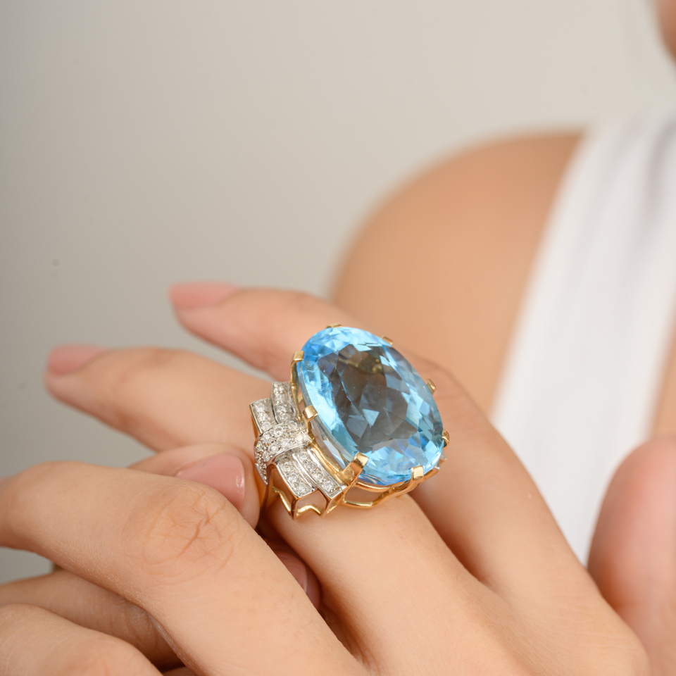 Gemstone:Natural Blue Topaz & Diamond