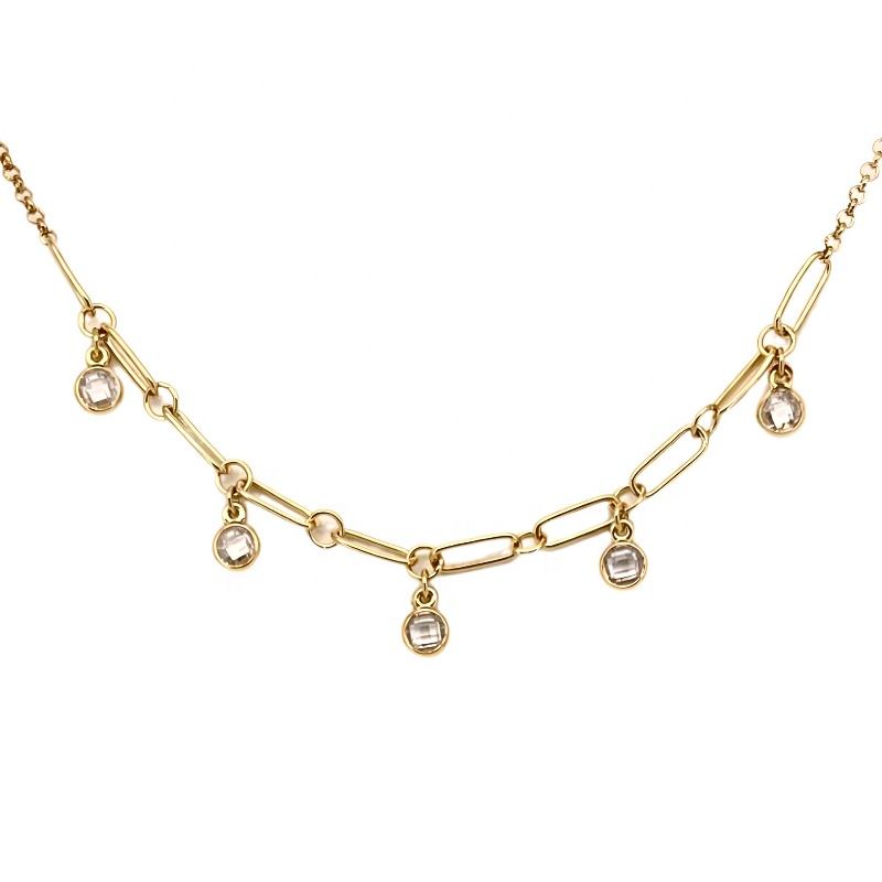 สร้อยคอโชกเกอร์สไตล์สเปนงานทำมือชุบทองด้วยเงินประดับเพทายกรอบการตั้งค่าโซ่เชื่อมโยงสำหรับผู้หญิง