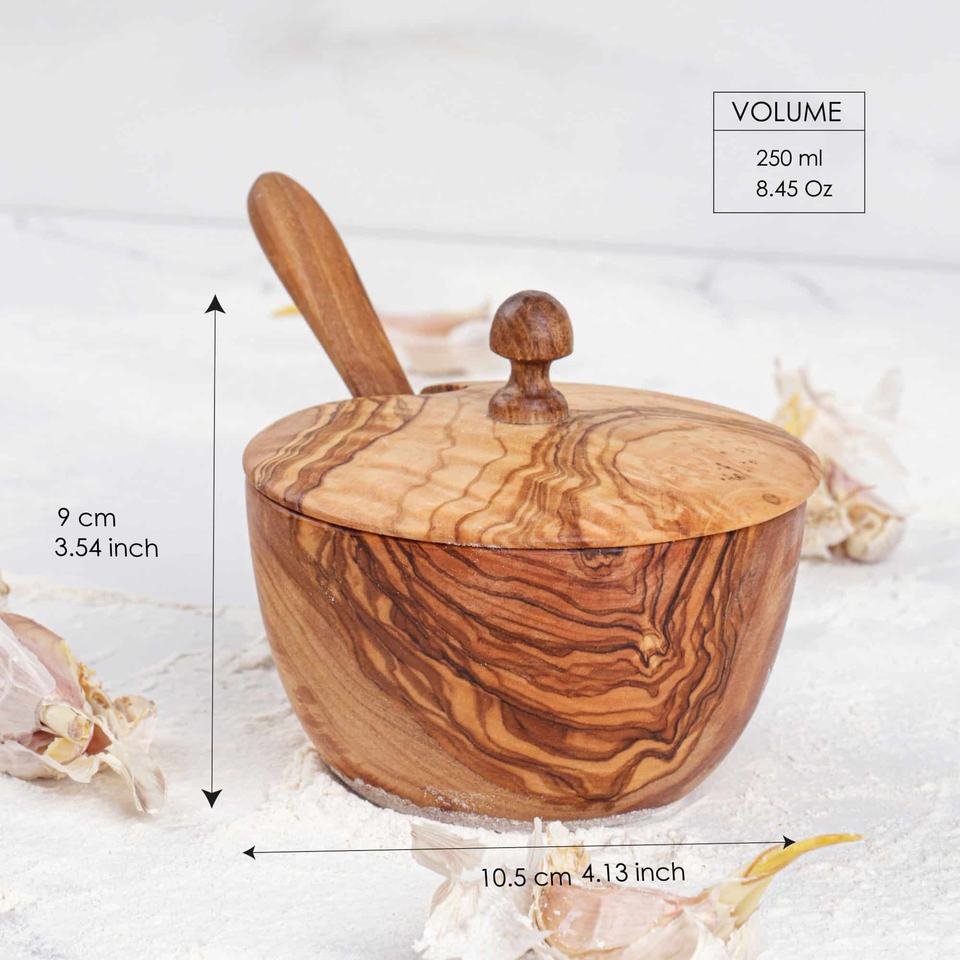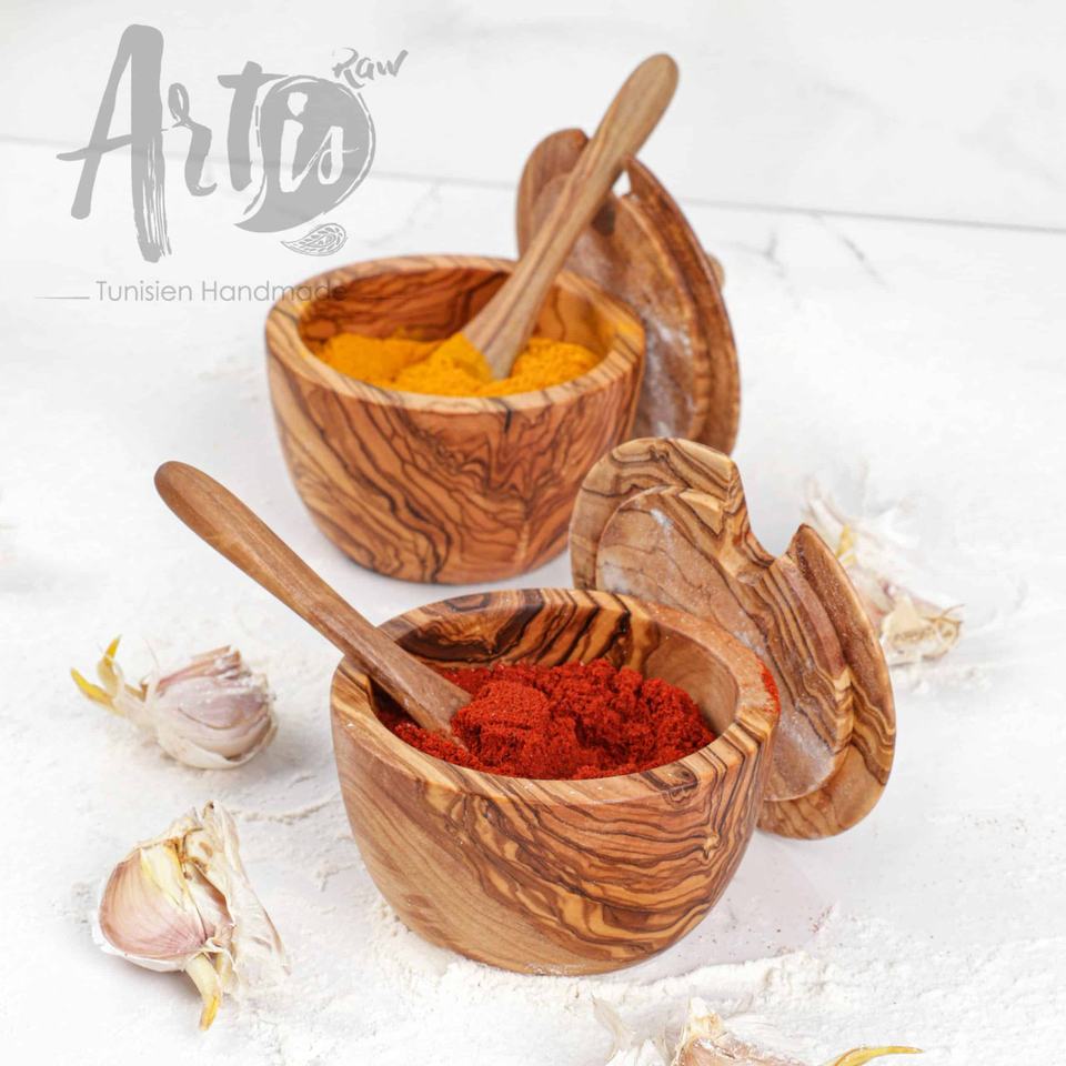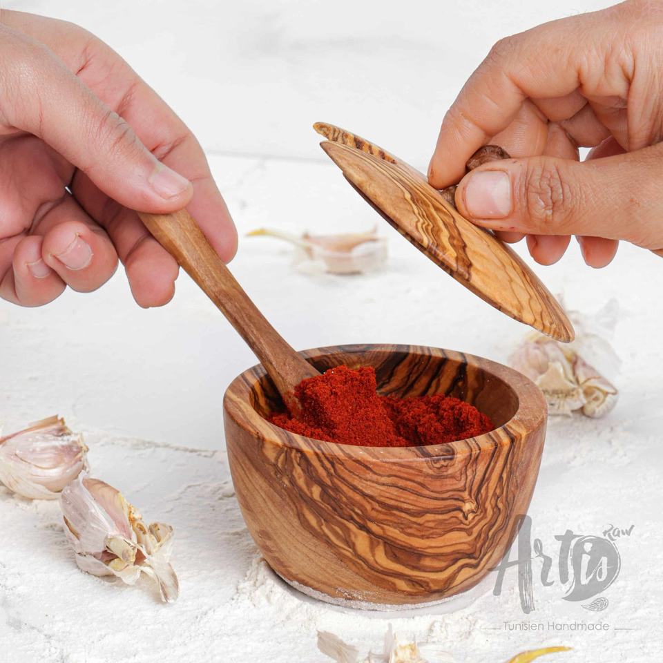 กล่องอาหารกลางวันทำด้วยมือทำจากไม้พร้อมช้อนเครื่องเทศสำหรับพกพาและเสิร์ฟเครื่องเทศ