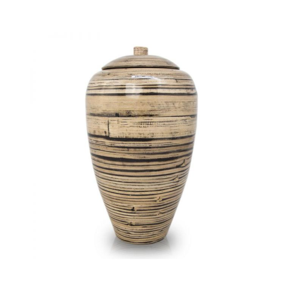 ที่ใส่เถ้ากระดูกขนาดเล็กแบบปั่นทำด้วยมือทำจากไม้ไผ่สานสำหรับงานศพสไตล์ดั้งเดิมจากเวียดนาม