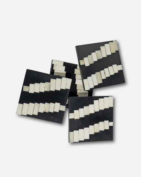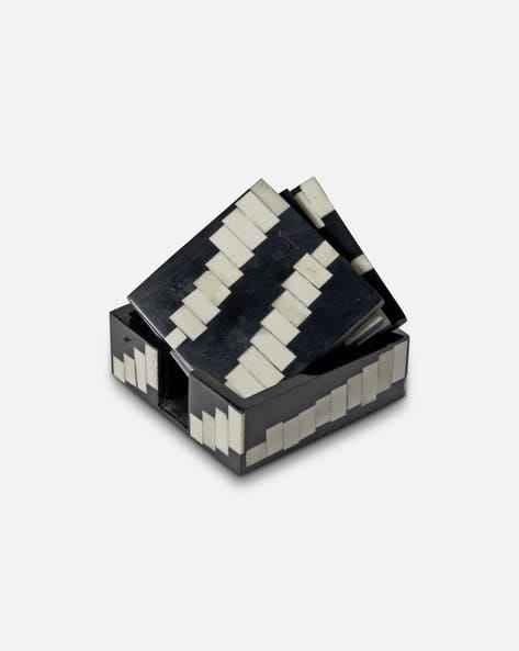 ที่รองแก้ววอลนัทฝังกระดูกสี่เหลี่ยมดีไซน์คลาสสิกเป็นมิตรต่อสิ่งแวดล้อมพร้อมลวดลายเรขาคณิตสี่เหลี่ยมสีดำและสีขาวที่ทันสมัย